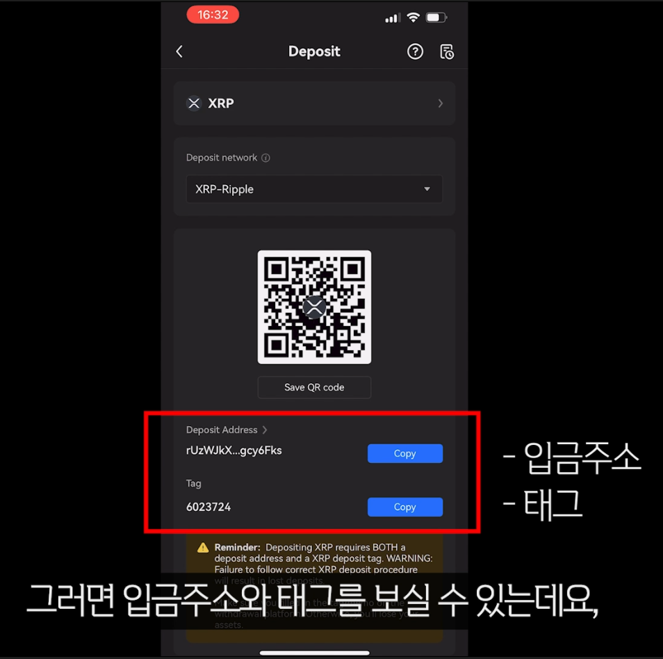 OKX거래소 입금주소와 태그를 입력하셔야 합니다.